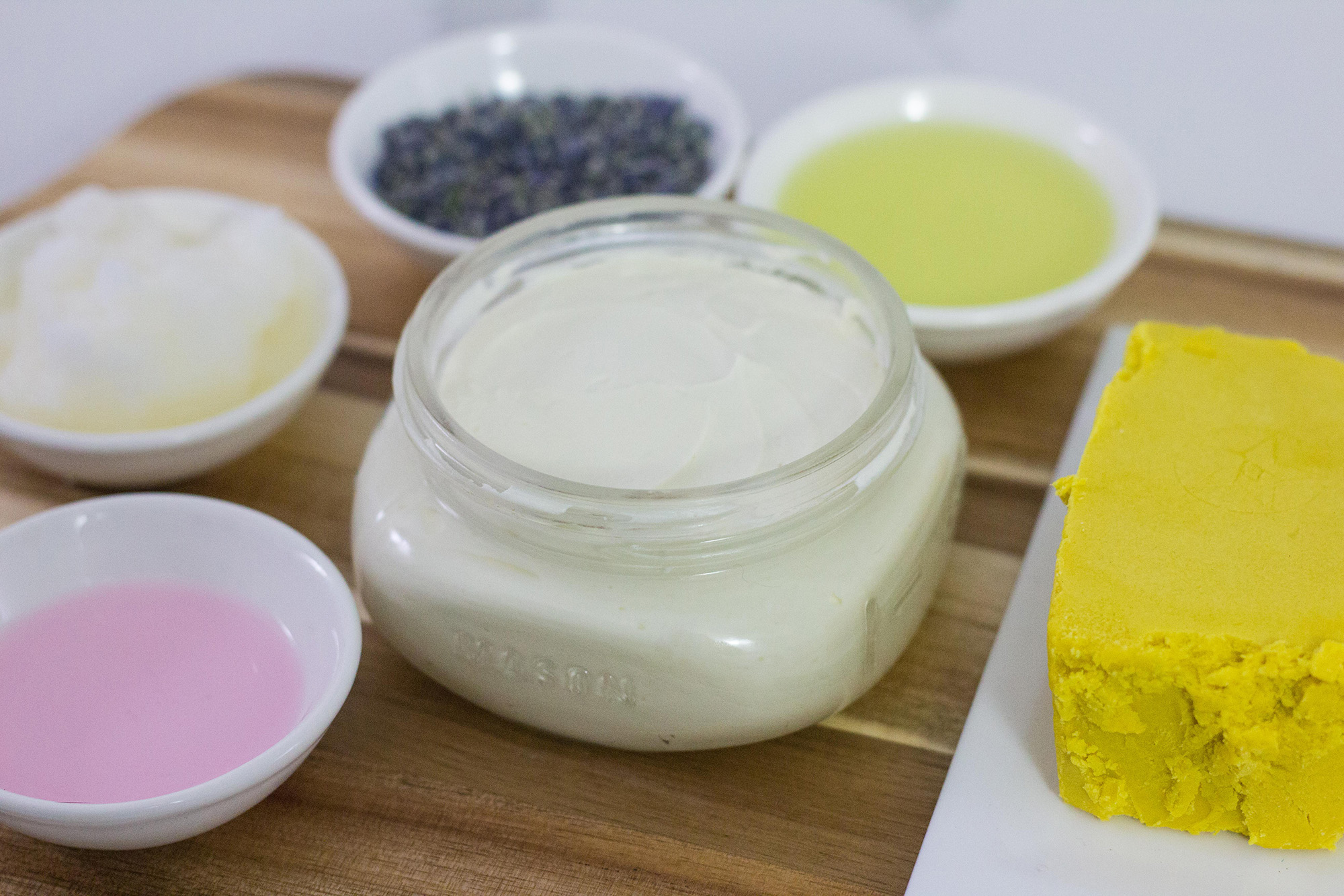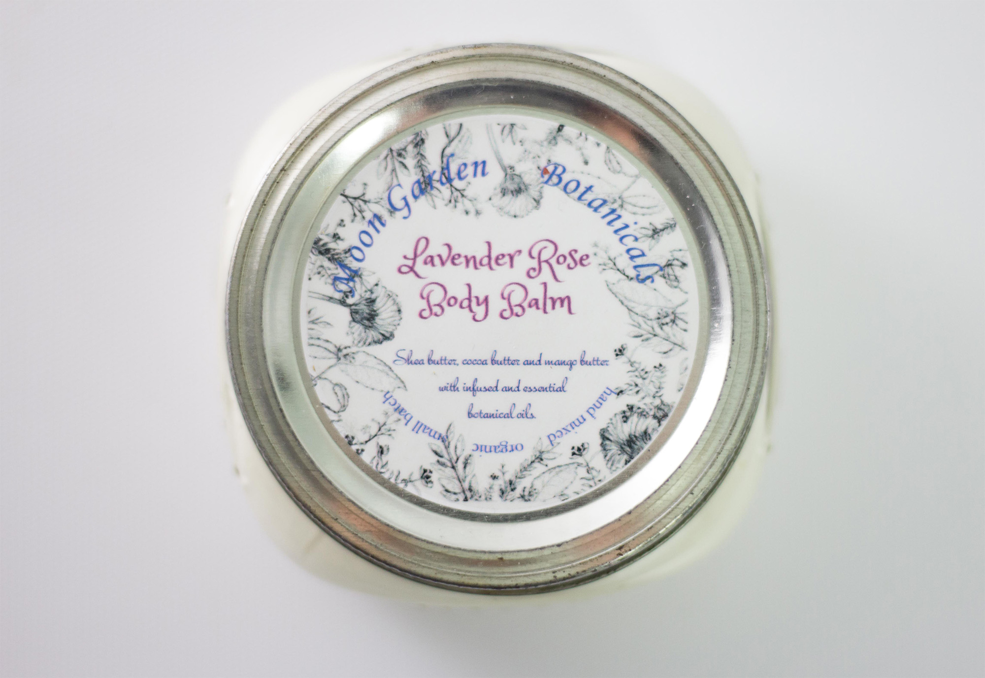I now use a super moisturizing base of 50% cocoa butter, 25% Shea Butter, and 25% mango butter, with a mix of oils including almond, jojoba, coconut oil with other essential oils and vitamin E, as well as flower-infused olive oil to formulate this super-rich whipped butter that can be used on all areas of your skin as well as on your hair. I began using it on my hair when I ran out of my usual leave-in conditioner, and I found it was even better! This product contains no preservatives.