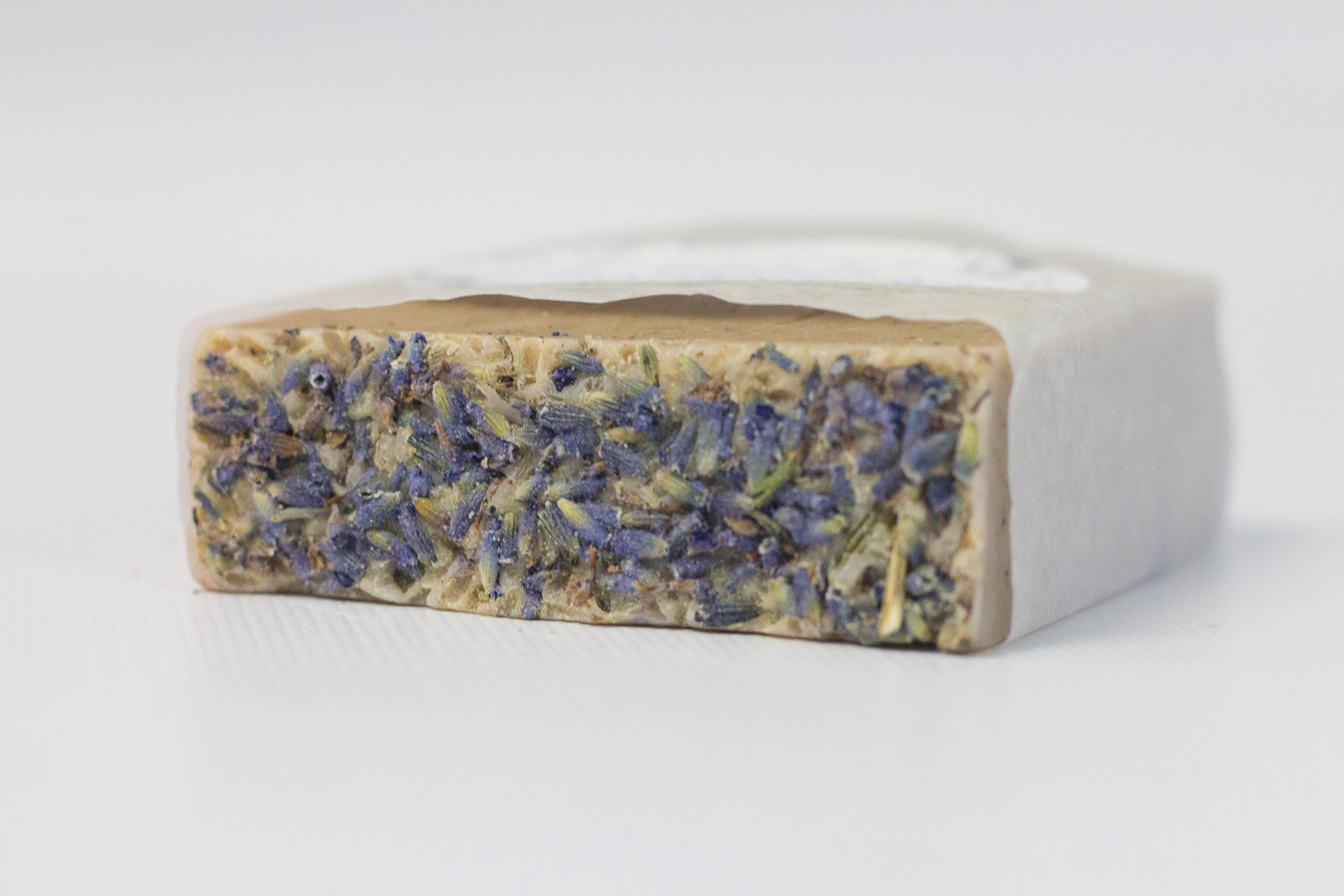 Ingredients: Olive oil, Coconut oil, Cocoa butter, Castor oil, Crushed and powdered lavender buds, Essential oil of Lavender
